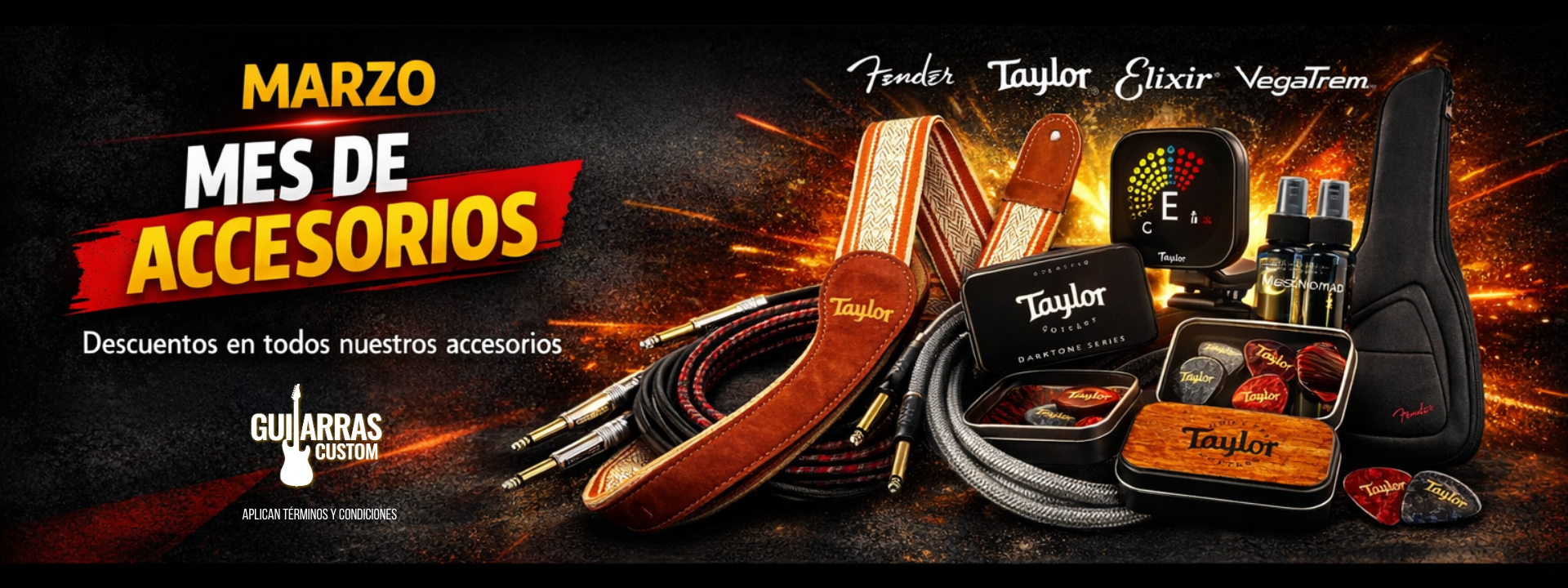 Contamos con un amplio catálogo de guitarras eléctricas, guitarras acústicas, guitarras electroacústicas y accesorios de marcas como Fender, Taylor, Suhr, Gretsch, Tagima, y muchas más.